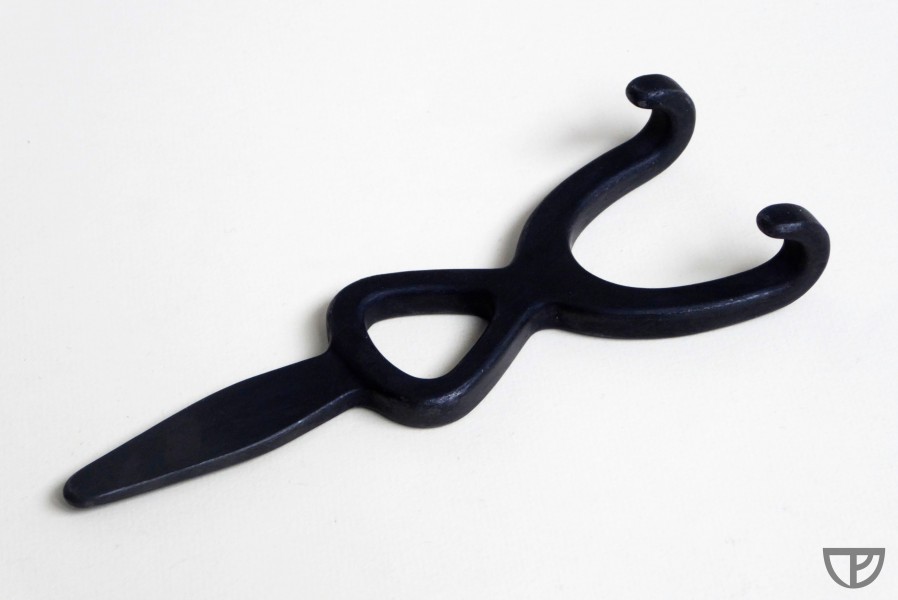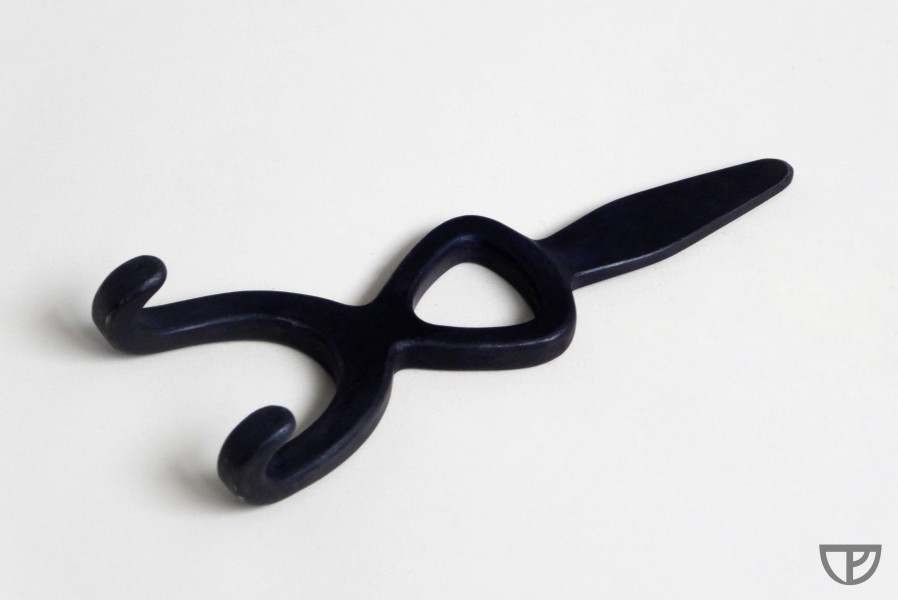 Rekonstrukce napínacího háku podle archeologického nálezu ze zaniklé středověké vsi Bystřec. Funkčnost ověřena na kuších s napínací silou 55 a 75 kg.